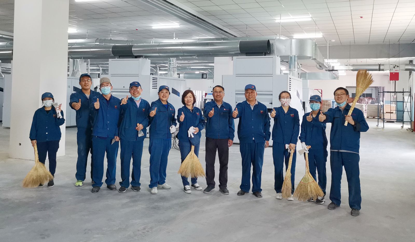 活動中,集團(tuán)總經(jīng)理、副總經(jīng)理、分公司總經(jīng)理充分發(fā)揮了領(lǐng)導(dǎo)帶頭作用,親身上陣、全力參與,帶領(lǐng)大家全身心投入,鼓舞了干勁、提升了士氣?;顒悠陂g,大家分工明確、密切配合。華源公司中高層干部負(fù)責(zé)前紡設(shè)備和地面的清擦、清掃;富華和卡姆公司中高層干部負(fù)責(zé)細(xì)紗設(shè)備和地面的清擦、清掃;集團(tuán)本部中高層干部負(fù)責(zé)各附房的清掃。所有活動區(qū)域和設(shè)備清掃項(xiàng)目全部通過了初步的驗(yàn)收。